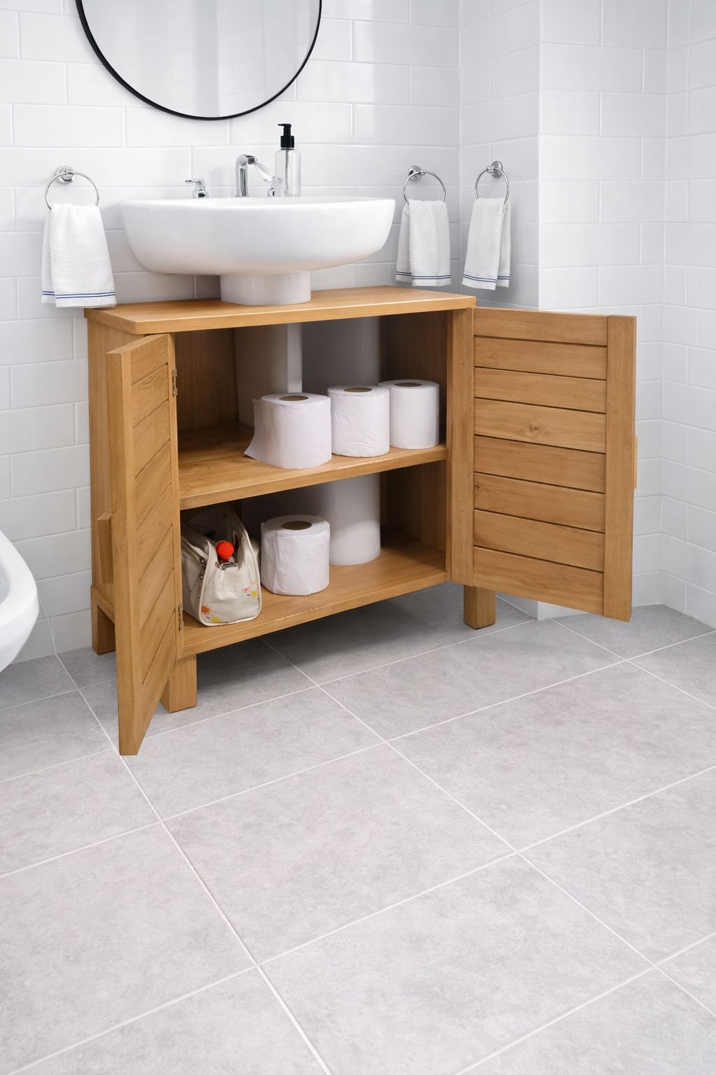 Mueble para baño Mueble para baño con estante realizado en madera . Frente 70 cm Profundidad 40 cm Alto 60 cm Organizador de baño con puertas y estante,super practico para guardar accesorios de baño. La medida es 60 de ancho x 21 de profundidad x 1.80 de alto. Colores:blanco,marron,roble o negro